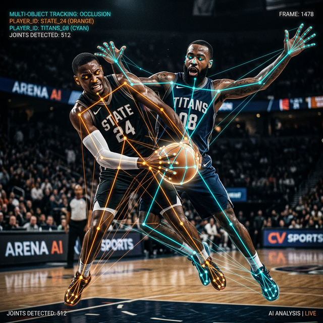 - Solving the Occlusion Problem: Because skeletal tracking maps individual limbs, the model can infer the position of a hidden limb based on the visible joints and human anatomical constraints. If a player's torso is blocked by a defender, the algorithm can still track their visible legs and head, maintaining ID persistence through severe occlusion.